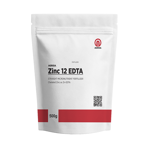 Agris ia Zinc 12 EDTA is a premium chelated micronutrient fertilizer that delivers zinc in an EDTA (Ethylenediaminetetraacetic Acid) chelated form. Chelation is a process where zinc ions are bound to an organic molecule (EDTA) that protects the nutrient from reacting with soil elements that would otherwise render it unavailable to plants. The result is zinc that remains soluble, available, and easily absorbed by plants — even in difficult soil conditions where traditional zinc sources fail.