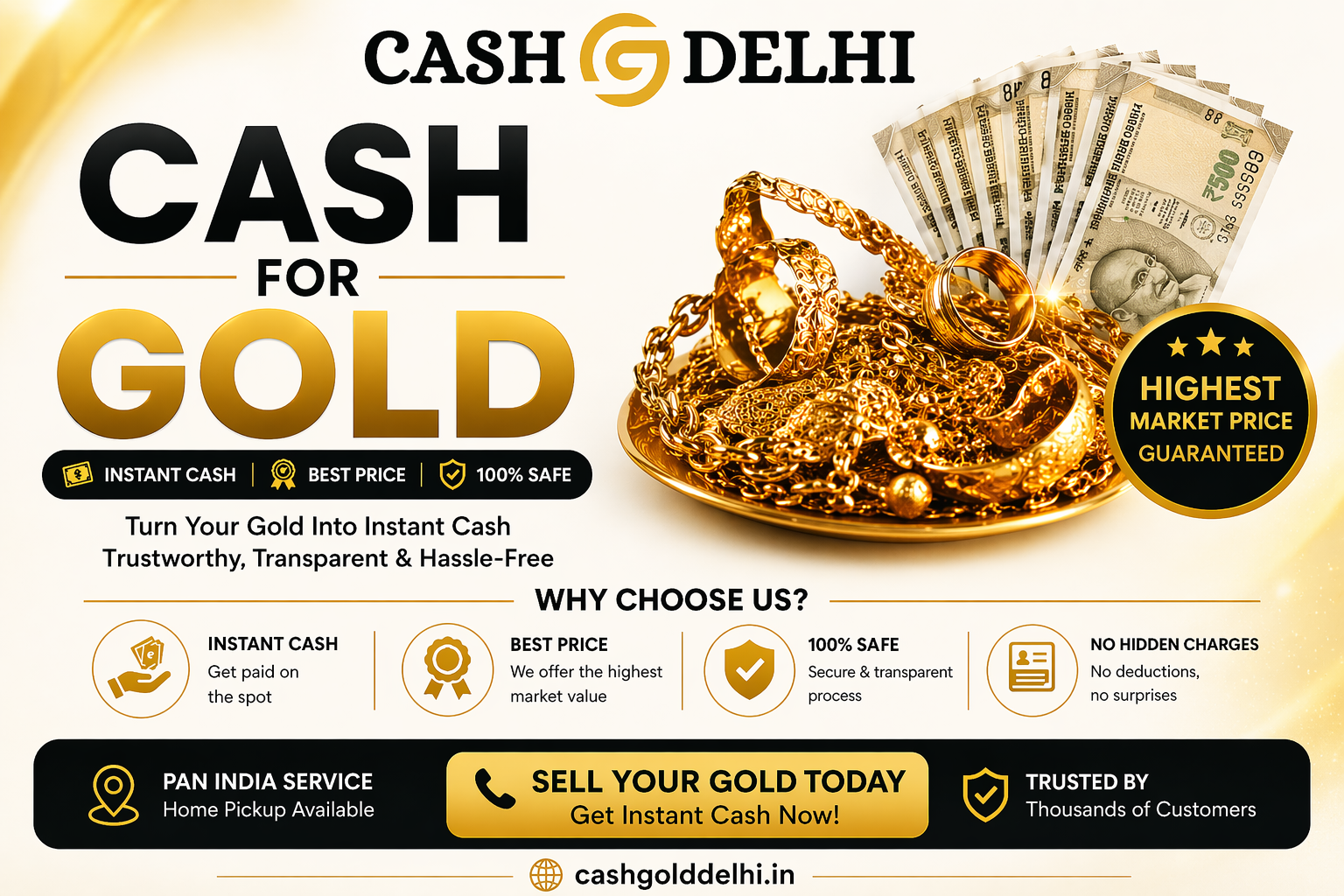 In today’s fast-moving world, finding a reliable place to sell gold for instant cash is important, especially during urgent financial needs. Whether you have old jewellery, broken ornaments, or unused gold items, choosing a trusted buyer ensures you get the right value without any risk. A professional service like CashGoldDelhi makes the entire process simple, secure, and transparent, helping you convert your gold into cash without unnecessary delays.