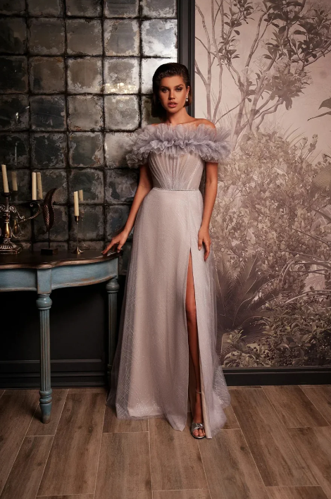 - Off-shoulder necklines add a romantic and refined touch.