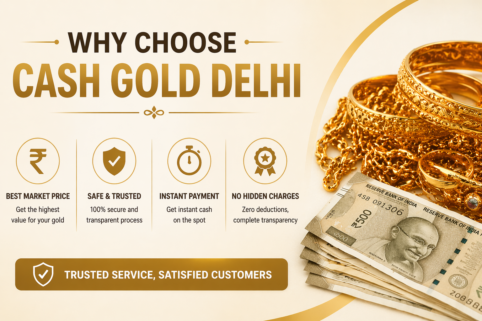 Get the best value for your gold with Cash Gold Delhi, a trusted cash for gold service offering fair pricing, instant payment, and complete transparency. Enjoy a safe and hassle-free experience with accurate purity testing and no hidden charges. Turn your gold into cash quickly with a reliable and customer-focused service.