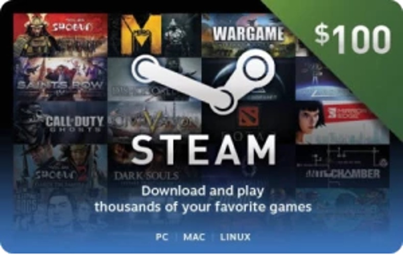 Navigate to the Gift Card section on the homepage and choose Steam Gift Card from the available options.